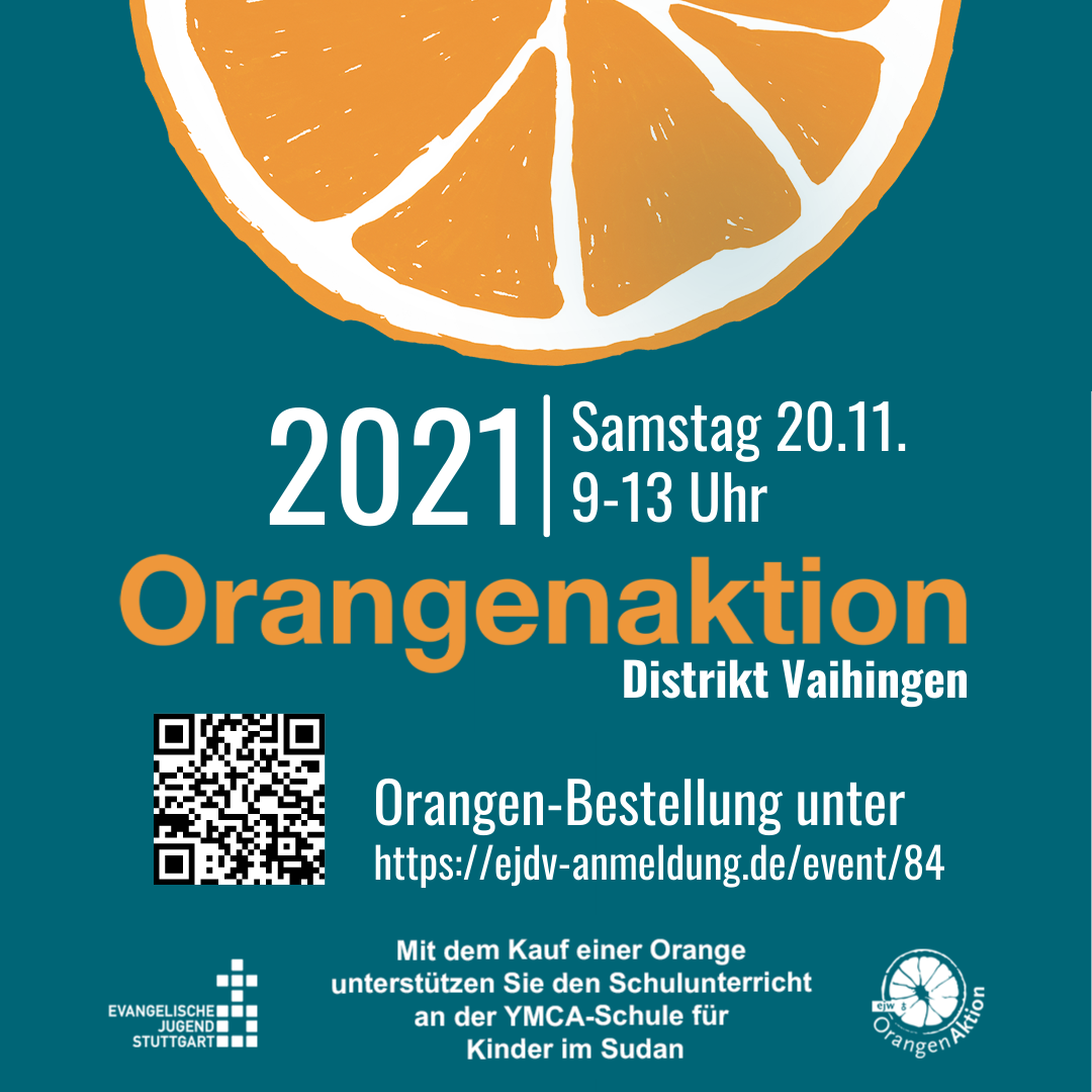 Auch dieses Jahr wollen wir mit unseren Jugendwerken Teil der Orangenaktion sein! Dafür benötigen wir Ihre Hilfe! Traditionell wurde beim FORUM der Evangelischen Jugend Stuttgart von vielen ehren- und hauptamtlich Mitarbeitenden über ein Spendenprojekt des ejw-Weltdienst abgestimmt, das wir mit Ihrer Hilfe unterstützen wollen. Wir sammeln Spenden und Sie erhalten für einen Euro Spende, als Dank, eine unbehandelte Bio-Orange! :)